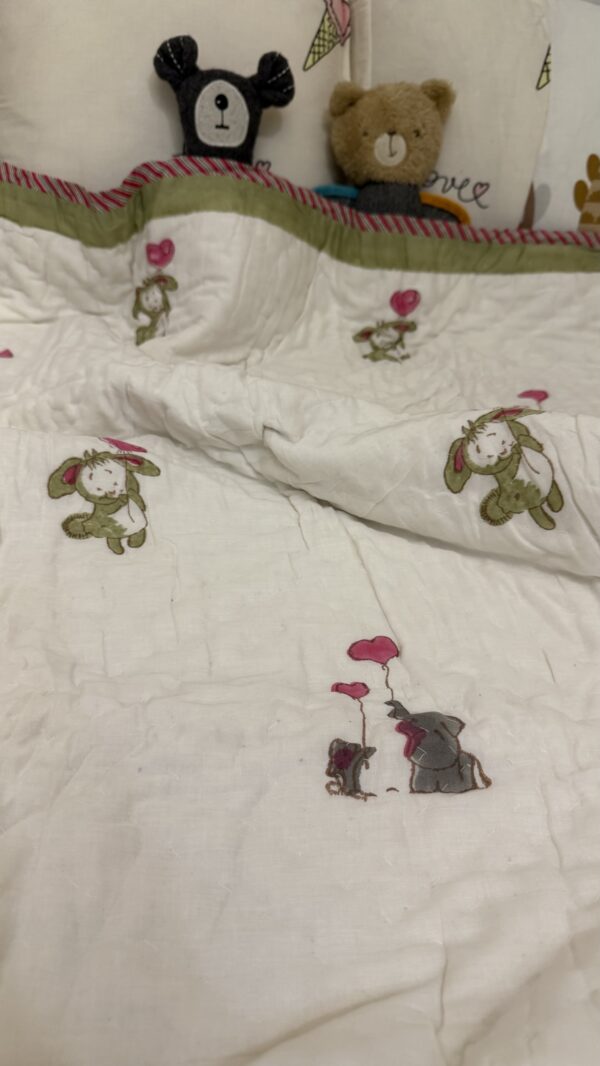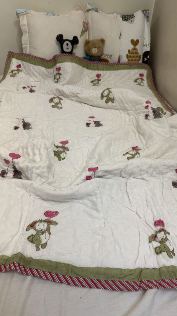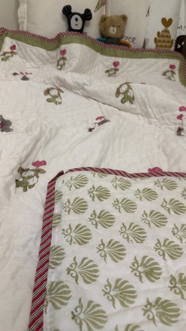 Wrap your little one in snuggly warmth with our playful mulmul cotton reversible kids razai! Soft, breathable fabric ensures cozy nights, while reversible designs add a dash of fun. Let their imagination soar as they drift into dreamland, cuddled in comfort and style.