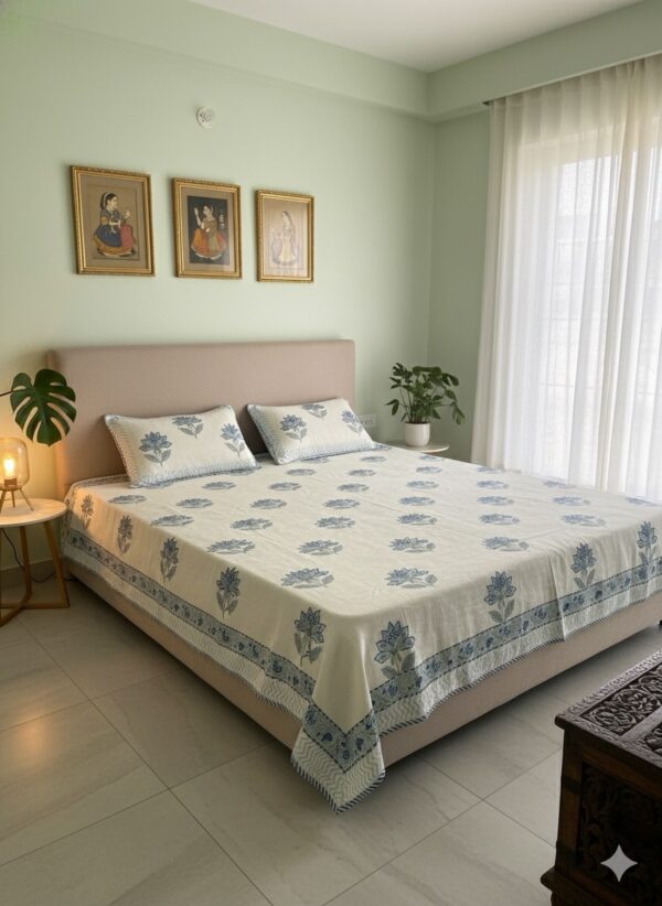 Crafted from a rich cotton-jute blend and adorned with intricate hand block prints, this bedcover adds warmth, texture, and artisanal beauty to your space. Perfect for creating a refined yet earthy aesthetic.