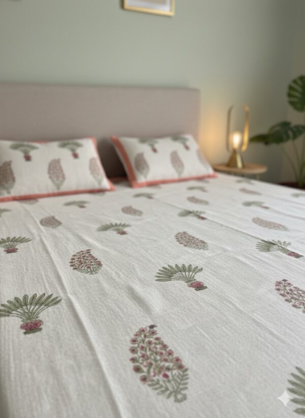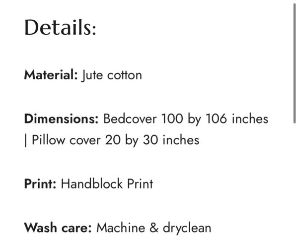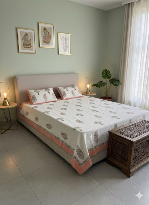 Crafted from a rich cotton-jute blend and adorned with intricate hand block prints, this bedcover adds warmth, texture, and artisanal beauty to your space. Perfect for creating a refined yet earthy aesthetic.