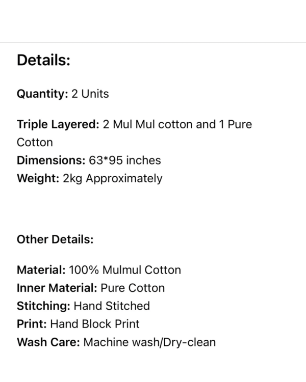 Triple Layered: 2 Mul Mul cotton and 1 Pure Cotton